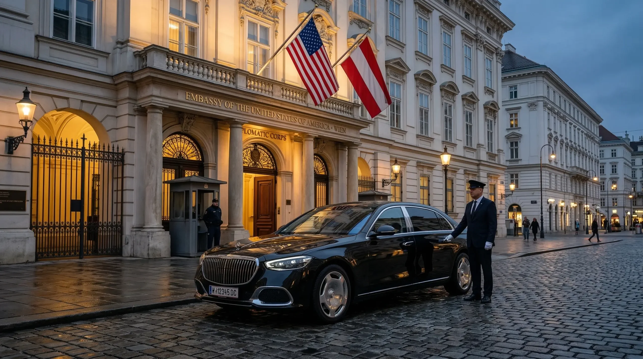 Unser Fahrdienst für Diplomaten und Botschaften in Wien ist speziell auf die Bedürfnisse internationaler Delegationen und offizieller Institutionen ausgerichtet. Wir gewährleisten eine sichere, diskrete und zuverlässige Beförderung für diplomatische Termine, Konferenzen und offizielle Veranstaltungen.